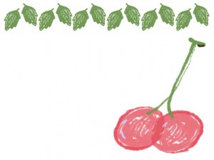 大人可愛い緑の葉っぱとピンクのさくらんぼの飾り枠(フレーム素材)