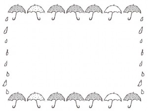 大人可愛い水玉(ドット)のモノクロの傘のイラストの飾り枠(フレーム素材)