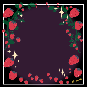 300pix 【春のフレーム】いちごのイラストのフレーム素材(正方形)-緑の背景