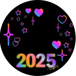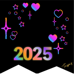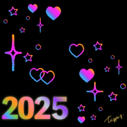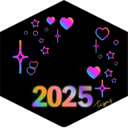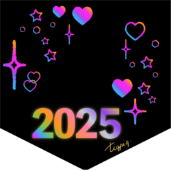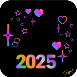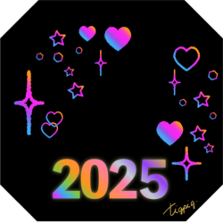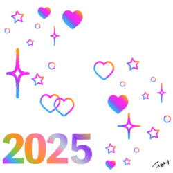 2025 虹色のグラデーションのハートと星とキラキラ[2025]のバナー素材600×600pix(デザイン.20)
