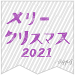 2021 【クリスマス 2021】メリークリスマス(カタカナ)2021の大正レトロ風手書き文字(茶色ver.)とシンプルなペールグレーのストライプのバナー(2)
