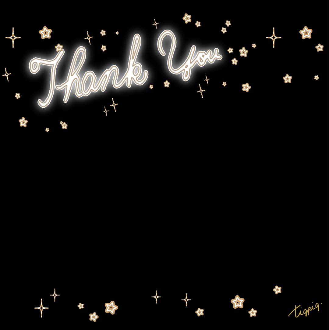 600×600pix [バナー素材]Thank youの手書き文字とあしらい(プレゼントや植物)の背景素材 (楕円) 600×600pix (透過Ver.)