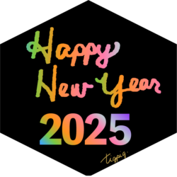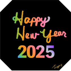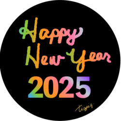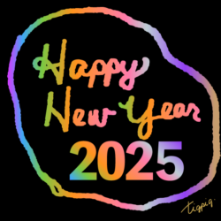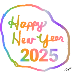年賀素材・筆記体のHappy New Year 2025の手書き文字とラフな囲み罫の素材(デザイン.1-透過) 600×600pix