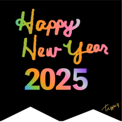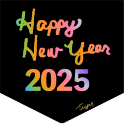 年賀素材・筆記体のHappy New Year 2025の手書き文字とラフな囲み罫のバナー素材300×250pix(デザイン.3 透過)
