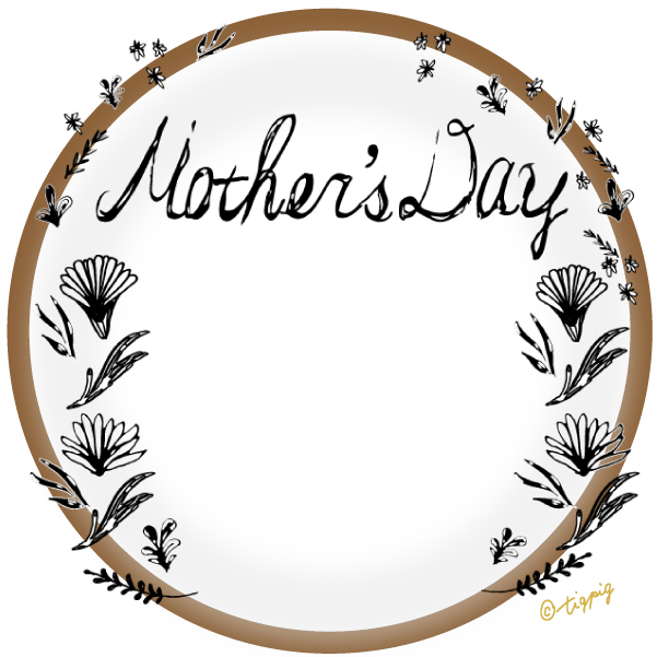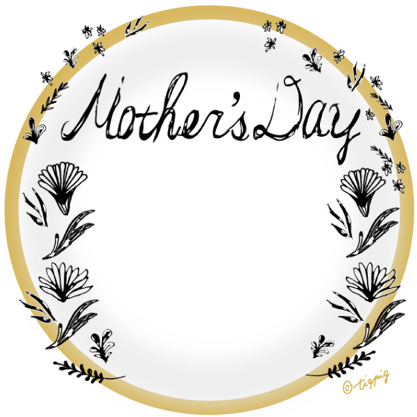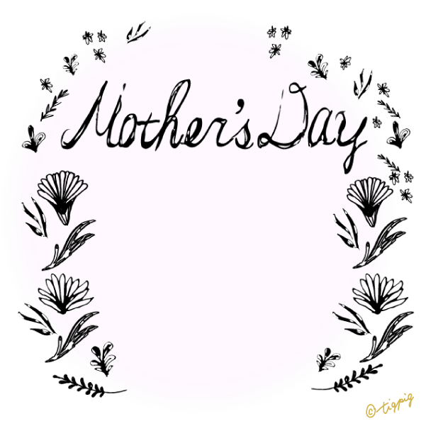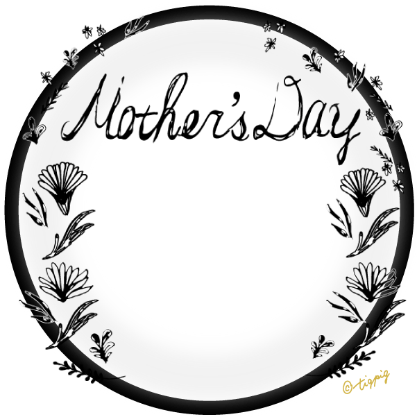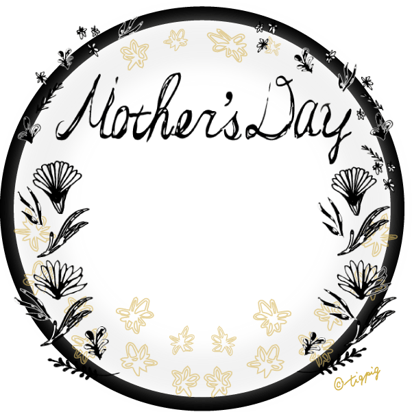 【母の日】mothersdayの手書き文字と北欧風小花とゴールドの円の枠と透過の背景のフレーム素材300×300pix ダウンロード600×600pix ダウンロード母の日の素材mother's dayの手書き文字と北欧風のモノトーンの小花...