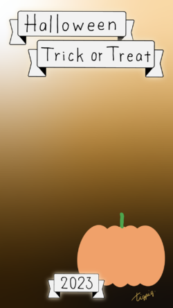Halloween Happy Trick or Treat 2023のレトロな手描き文字とかぼちゃのイラストとリボンのあしらいのバナー素材 1080×1920pix(デザイン.01 透過)新商品やお知らせなどのバナー制作、WEBデザインな...