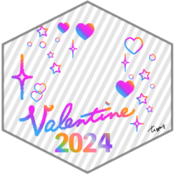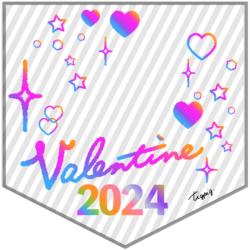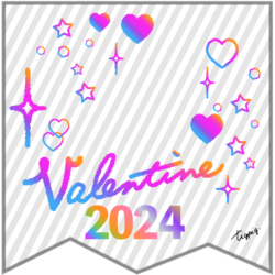 虹色のグラデーションのValentine 2024の手書き文字とキラキラのあしらいの無料素材600×600pix(デザイン.1)