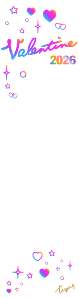 虹色のグラデーションのValentine 2026の手書き文字とキラキラのあしらいのバナー素材600×600pix(デザイン.1-透過)