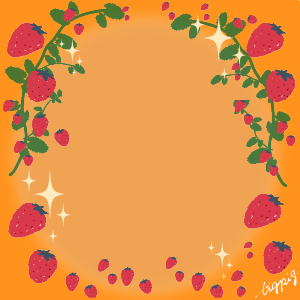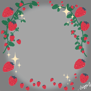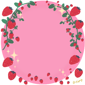 300pix 【春のフレーム】いちごのイラストと黒の円の枠と白の背景のフレーム素材