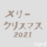 2021 【クリスマス 2021】メリークリスマス(カタカナ)2021の大正レトロ風手書き文字(赤色ver.)とペールグレーのストライプの囲み罫の正方形