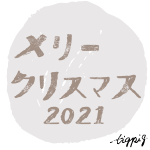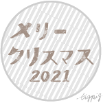 2021 【クリスマス 2021】メリークリスマス(カタカナ)2021の大正レトロ風手書き文字(赤色ver.)とモノトーンのボタニカルの小花とペールグレーのストライプの八角形の枠