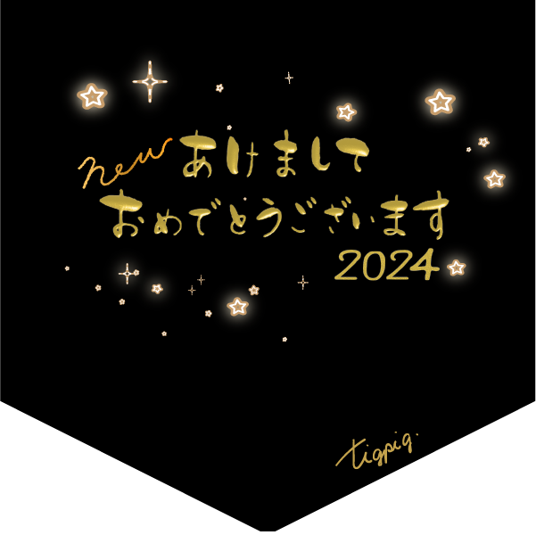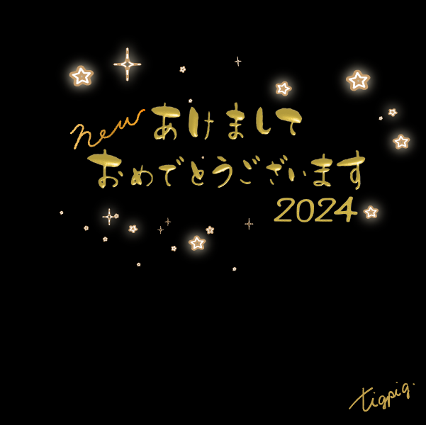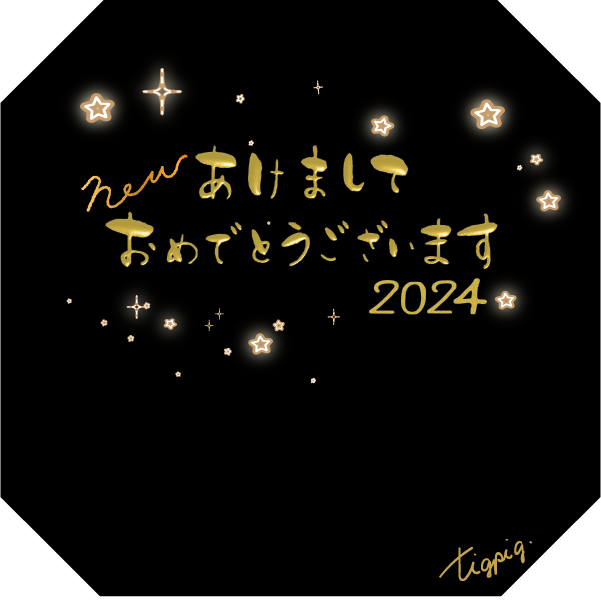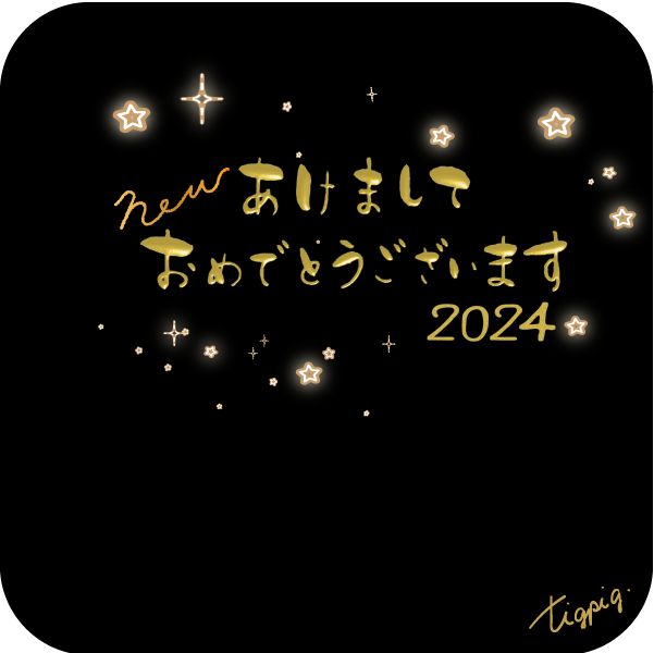 2024 [年賀・かな文字]あけましておめでとうnew2024のメタリックゴールドの3Dの手描き文字のバナー素材600×600pix(デザイン.7)