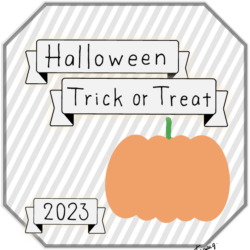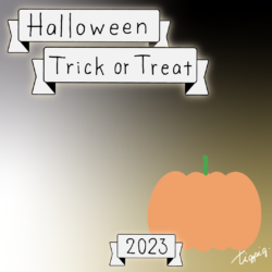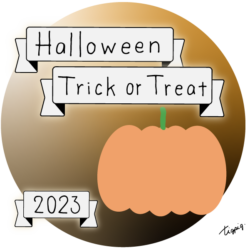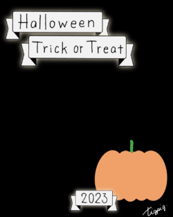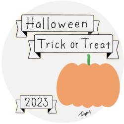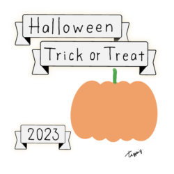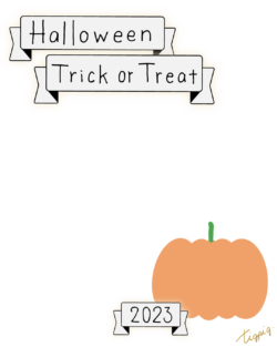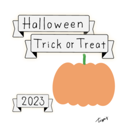 160×600pix [縦長バナー]Halloween Happy Trick or Treat 2023のレトロな手描き文字とかぼちゃのイラストとリボンのあしらいのバナー素材160×600pix(デザイン.2)