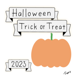 Halloween Happy Trick or Treat 2023のレトロな手描き文字とかぼちゃのイラストとリボンのあしらいのバナー素材160×600pix(デザイン.2)新商品やお知らせなどのバナー制作、WEBデザインなどに使えるHa...