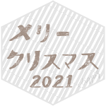 2021 【クリスマス 2021】メリークリスマス(カタカナ)2021の大正レトロ風手書き文字(赤色ver.)とシンプルなペールグレーのストライプの丸い背景