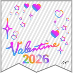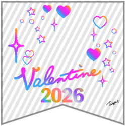 虹色のグラデーションのValentine 2026の手書き文字とキラキラのあしらいのバナー素材(透過) 1080×1080pix(デザイン.1-透過)
