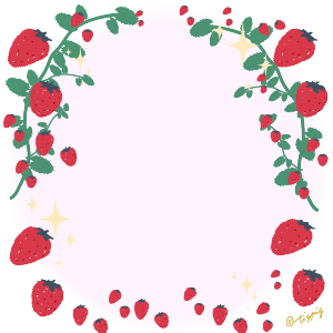 300pix 【春のフレーム】いちごのイラストとピンクの円の枠と小花の透過の背景のフレーム素材