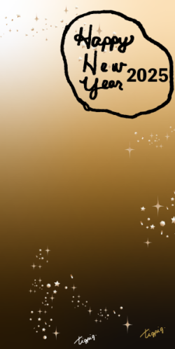 年賀素材・筆記体のHappy New Year 2025の手書き文字とラフな囲み罫のバナー素材300×600pix(デザイン.1-透過)