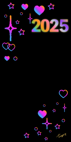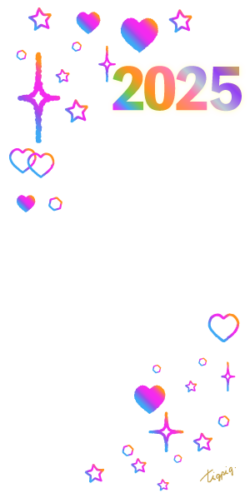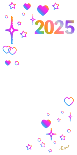 [縦長1:2]虹色のグラデーションのハートと星とキラキラ[2025]のバナー素材300×600pix(デザイン.1-透過)
