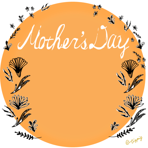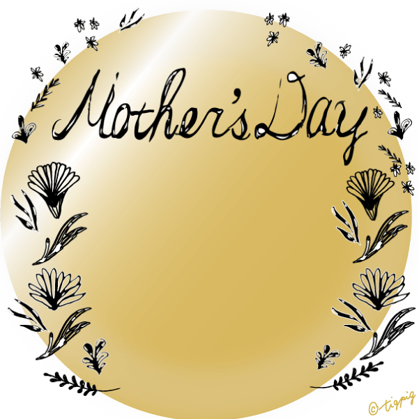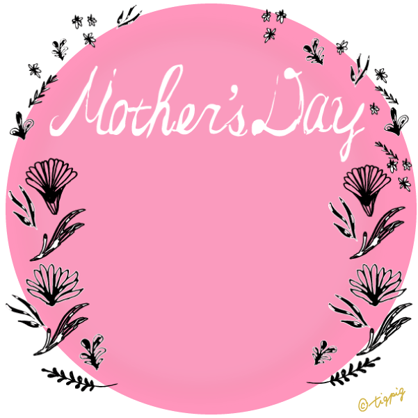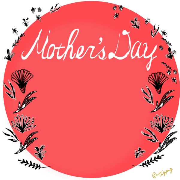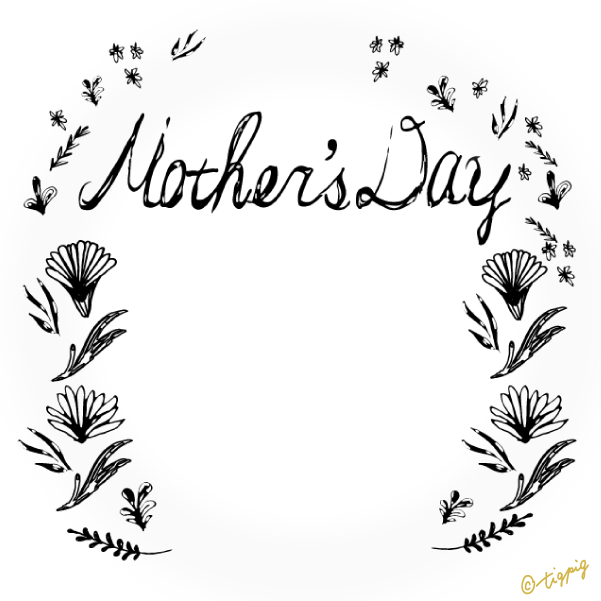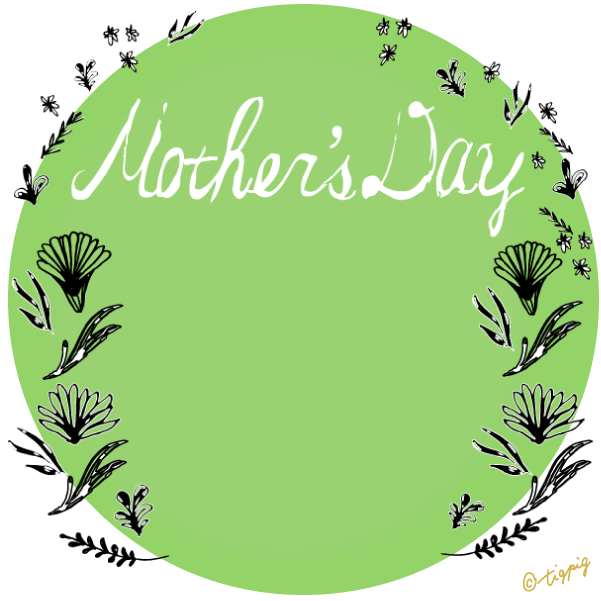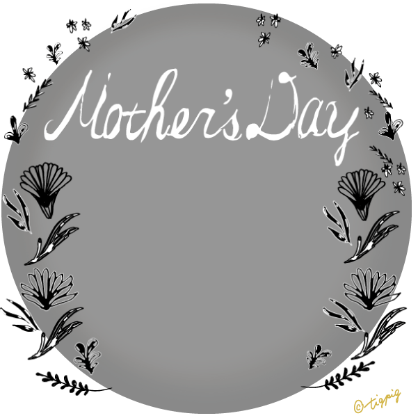 300pix 【母の日】mothersdayの手書き文字と北欧風小花のラベル風素材(黒の円の枠)