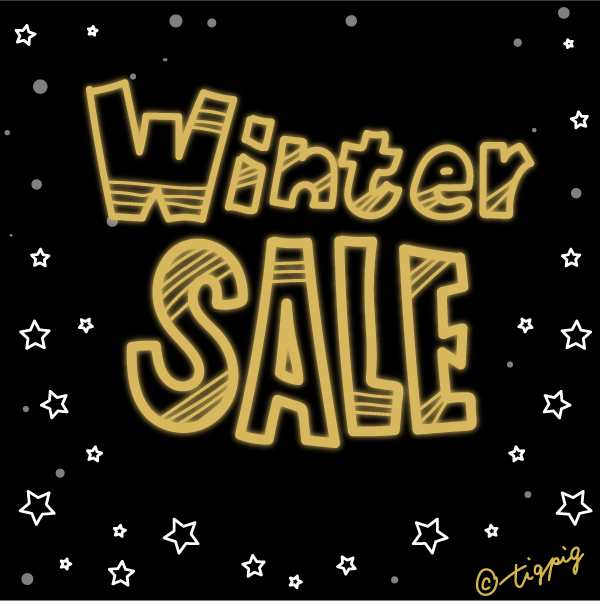 600pix 【SALE】Winter SALEの手描き文字とストライプの背景のモノトーンのweb素材(600pix)